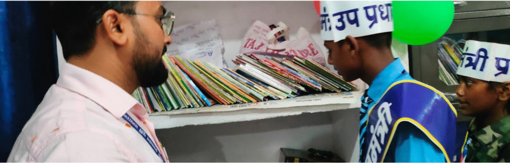 Note: The Library Minister from the Bal Sansad assists the Librarian in managing the issue and return process.