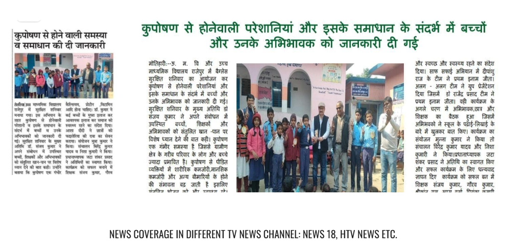 News Coverage in different News Papers:Prabhat Khabar, Dainik Bhaskar, Dainik Jagran, Hindustan, Garib Darshan, BNM News, Ayodhya Times etc.
